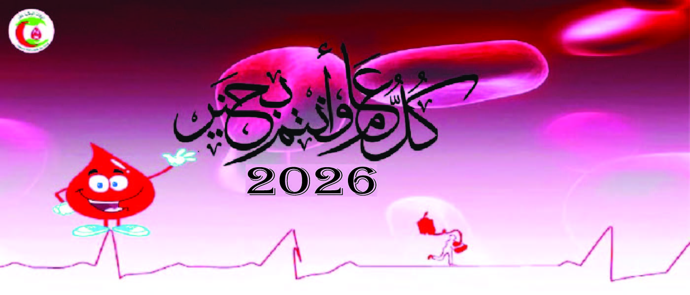 بمناسبة حلول العام الجديد 2026تتقدم المديرة العامة وكافة موظفي الوكالة الوطنية للدم بأعز التهاني ويتمنوا لكم عام سعيد